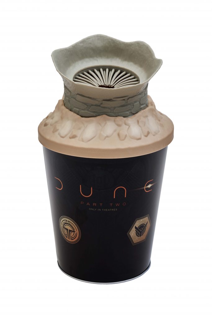 “I think it’s pretty clear that we live in an age of social media and instant gratification,” says Rod Mason, vice president of business development at Zinc Group, the marketing agency behind the Dune: Part 2 popcorn bucket. “If you can [say], ‘I’ve got the Dune popcorn bucket,’ it kind of elevates your coolness.”